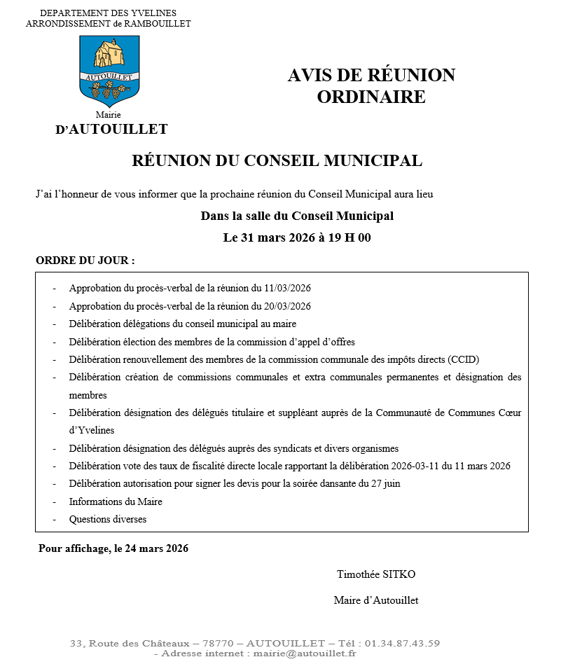 Voici les résultats de l’élection municipale. La liste » Le nouvel élan pour Autouillet » menée par Monsieur Timothée SITKO remporte l’élection avec 231 voix.