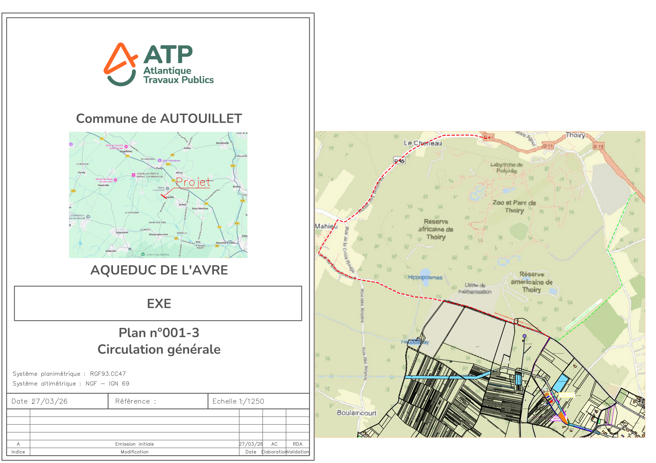 Itinéraire : D11 → Thoiry → Villiers-le-Mahieu → accès chantier par chemin existant